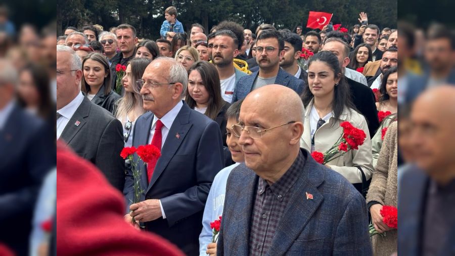 Aslanlı yoldan yürüyerek Gazi Mustafa Kemal Atatürk'ün mozolesine gelen Kılıçdaroğlu ve beraberinde gençler, mozoleye karanfil bırakmalarının ardından saygı duruşunda bulundu.