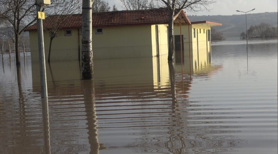 Kırklareli'nde etkili olan yağış sebebiyle su seviyesi yükselen Ergene Nehir'i taştı. Taşkın sonucu nehrin geçtiği Pehlivanköy ilçesine panayır alanı ve tarım arazileri sular altında kaldı.