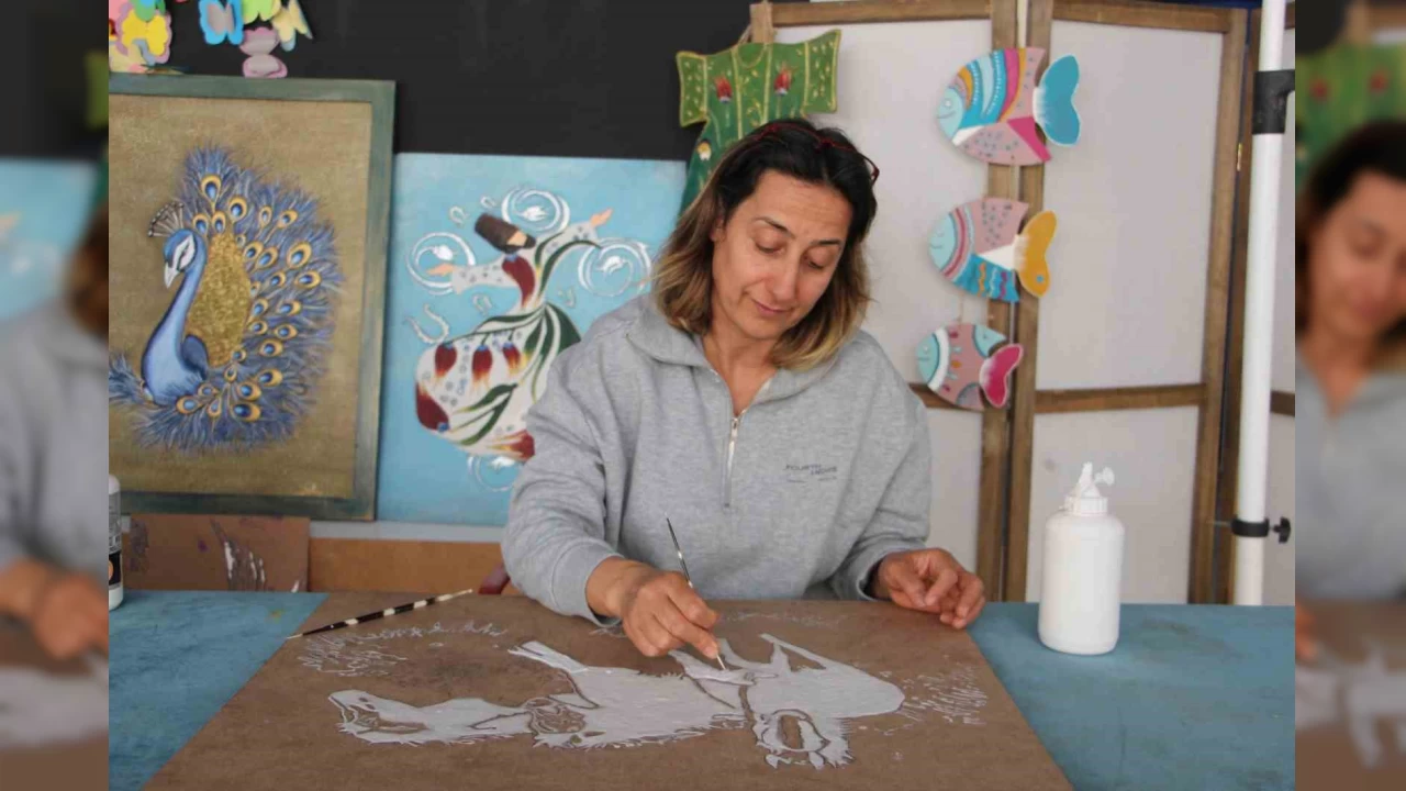 Depremin vurduğu Hatay'da yaşayan el sanatları eğitmeni Çiğdem Fakı'nın eğitim verdiği 33 afetzede kadın, kirpi okunu kullanarak rölyef tablolarını ortaya çıkarıyor.