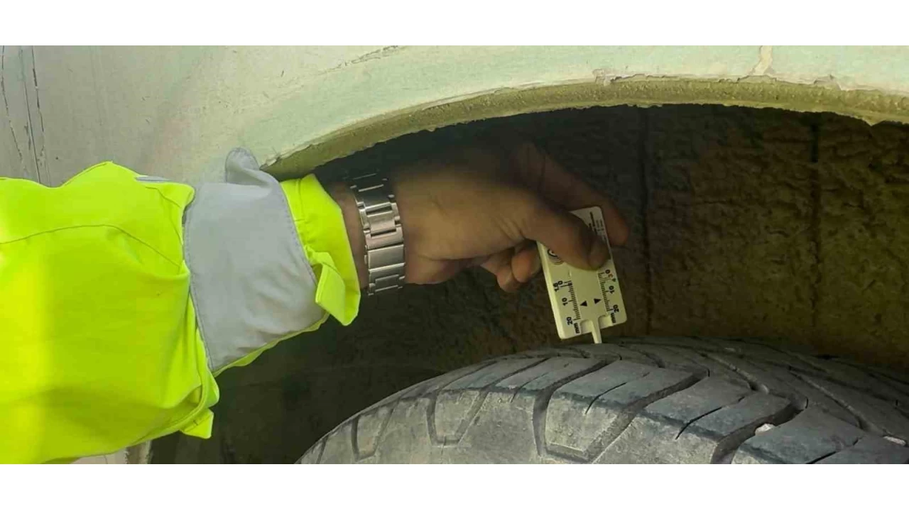 Selimiye Camii Meydanı'ndaki denetim noktasında ekiplerce durdurulan araçlardaki lastiklerin diş derinlikleri ölçüldü.