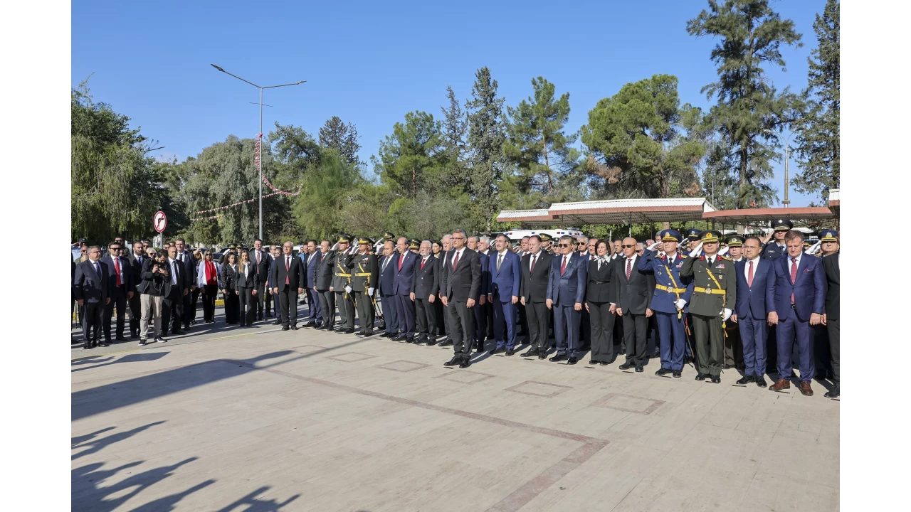 Lefkoşa Atatürk Anıtı önünde düzenlenen tören İstiklal Marşı ve saygı duruşu ile başladı.