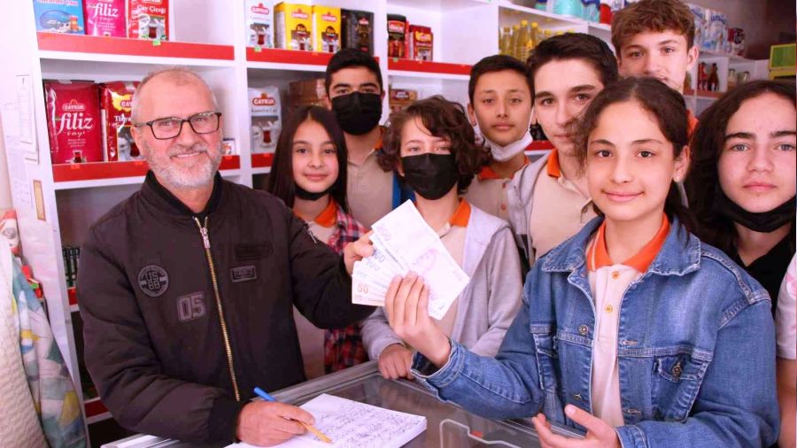 Amasya'da Ziyapaşa Ortaokulu öğrencileri harçlıklarından biriktirdikleri parayla ihtiyaç sahibi iki ailenin mahalle bakkalına olan borcunu ödedi
