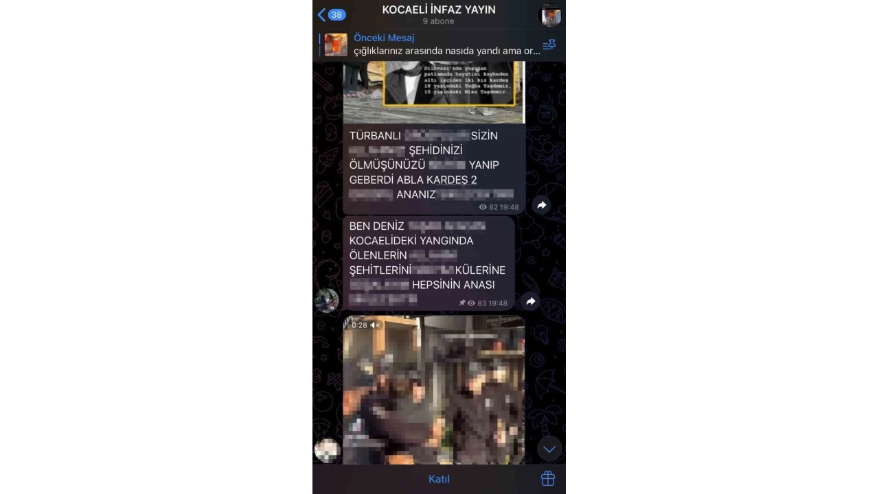 Olayın ardından "Kocaeli İnfaz Yayın" isimli bir Telegram sayfasında, yangında ölen vatandaşlara yönelik küfürlü ve hakaret içerikli paylaşımlar yapıldığı ortaya çıktı.