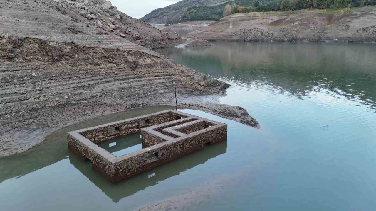 Düşük su seviyesi nedeniyle baraj havzasındaki eski köprü ve yapılar yeniden görünür hale geldi. Dron ile barajın kuraklığı havadan görüntülendi.