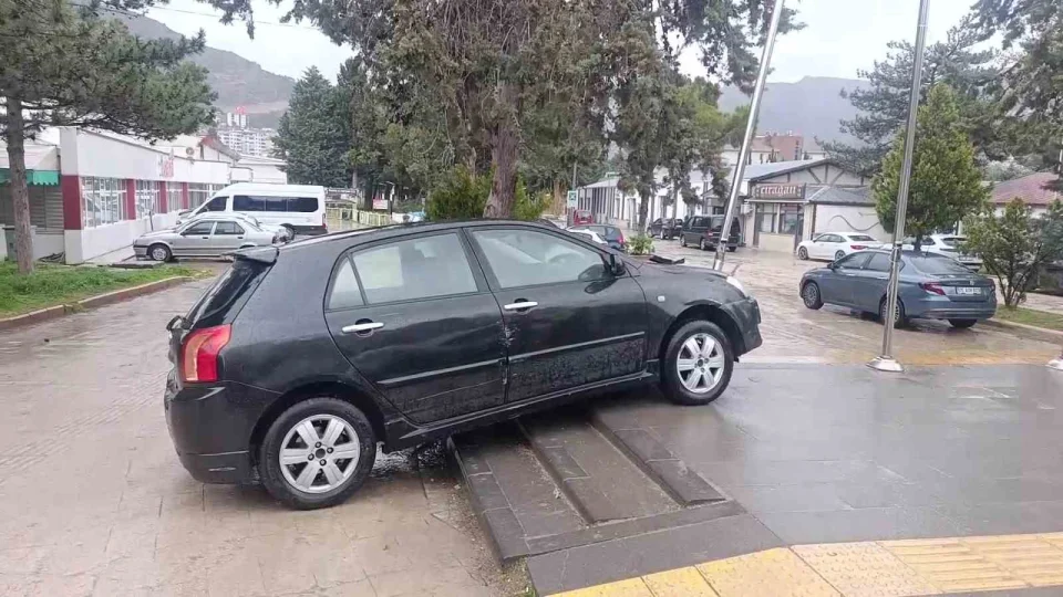 Amasya'da sürücüsünün kontrolünden çıkan otomobil yöneldiği karşı şeritte otobüs durağını teğet geçip direğe çarptı. Durakta bekleyenlerin tehlike atlattığı anlar kameraya yansıdı