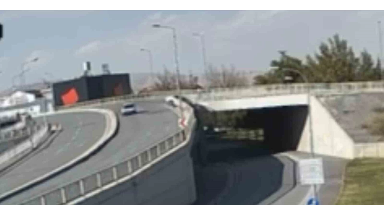 Öte yandan, kaza anı saniye saniye güvenlik kamerasına yansıdı. Görüntülerde üst geçitte seyir halinde olan otomobilin kontrolden çıkması, bariyerleri kırarak aşağıya düştüğü görülüyor.