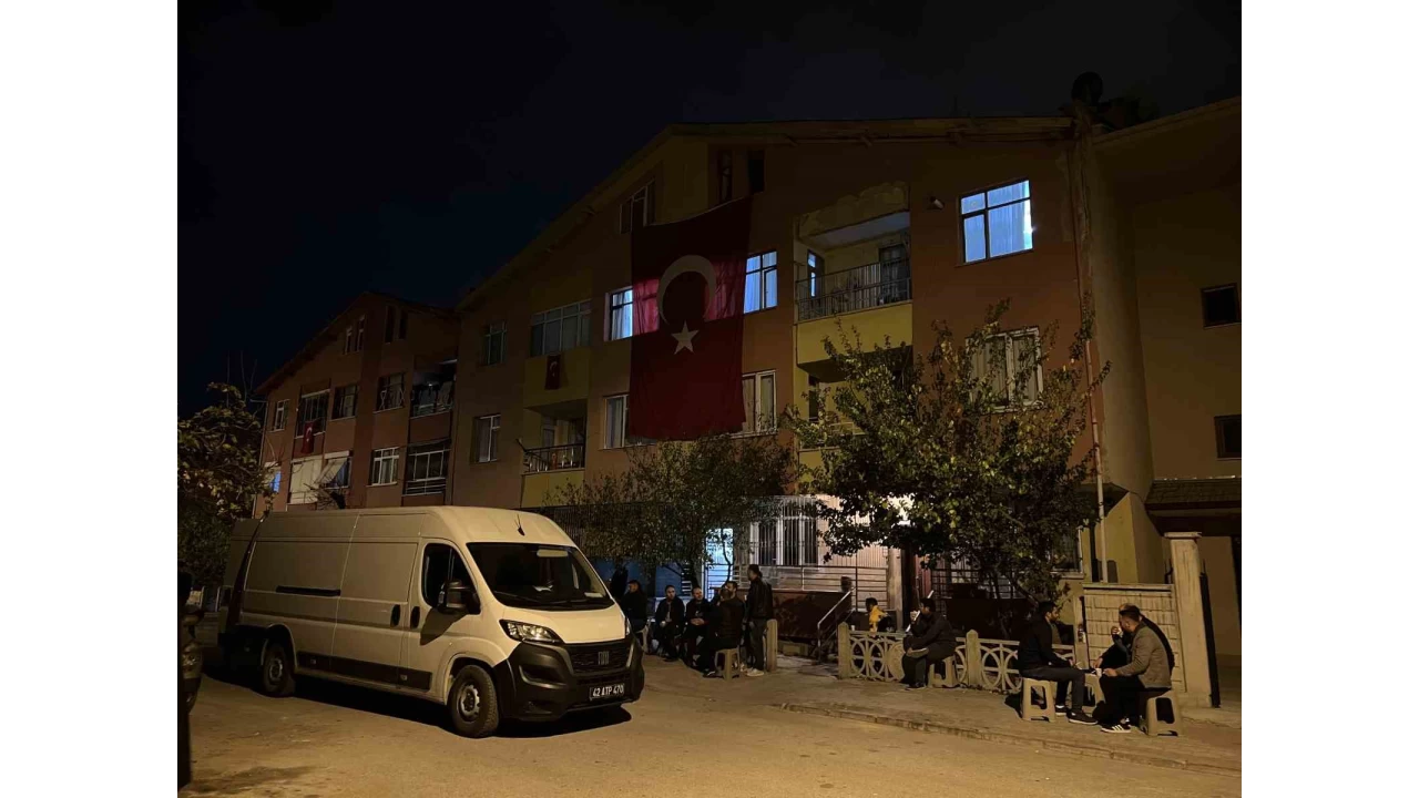 Acı haberin ardından şehidin baba ocağına Türk bayrağı asıldı.
