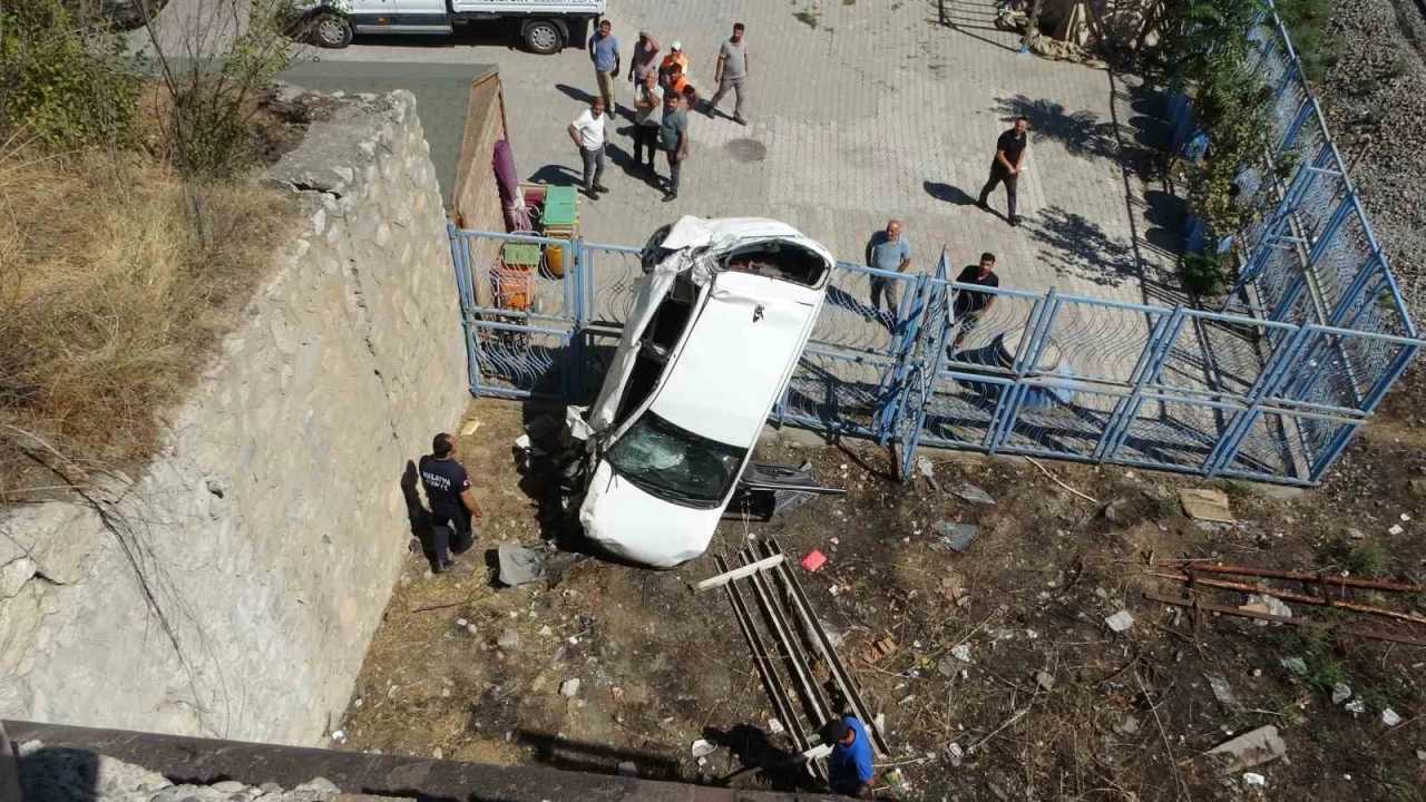 Malatya'da, sürücüsünün kontrolünden çıkan otomobil köprü korkuluklarını kırarak aşağı uçtu