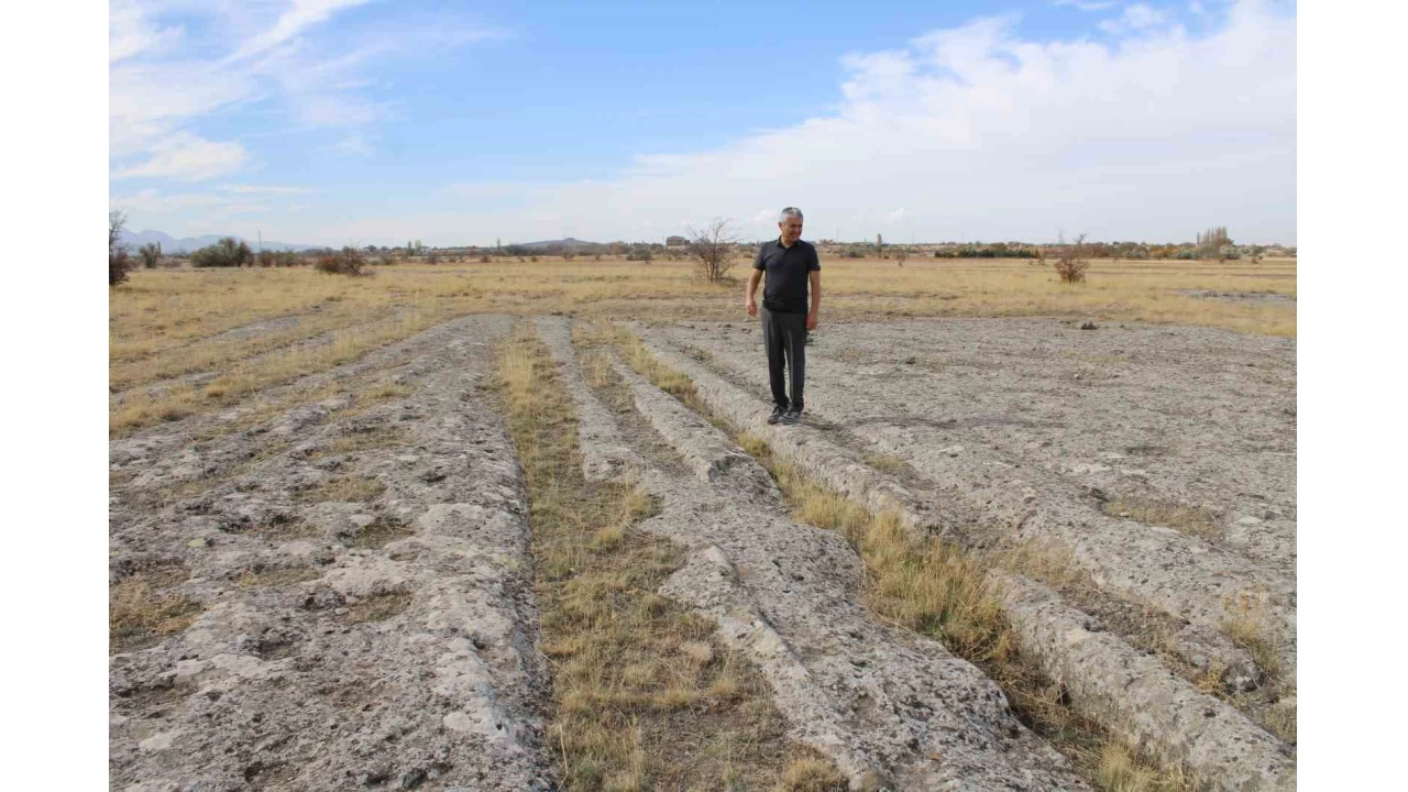 Turan Mahallesi'nde bulunan izlerin kağnı izleri olduğunu düşündüklerini ancak literatürde henüz bununla ilgili bir çalışma yapılmadığını sözlerine ekleyen Prof. Dr. Osman Özsoy, "Şu anda, Turan'ın güneybatı istikametinde, mahalle merkezine yaklaşık 2 kilometre mesafede bir yerdesiniz. Burada çeşitli izler var. İzler belirgin ve derinliklere sahip. İzler arasındaki mesafeler genellikle çok bilindik ve rastgele olmayan mesafeler. Biz buranın savaşta, ticarette ya da barışta kullanılan bir atlı araba veya öküzlü araba yolu olduğunu tahmin ediyoruz. Engir Gölü çevresinde, Kültepe-İldem aksında da böyle bir alanın olduğunu biliyoruz. Burası, güvenli olduğu için tercih edilmiş. Altyapısı, araçların yüklü veya yüksüz şekilde geçmelerine müsaade ettiği için tercih edilmiş. Yıllar içerisinde çok fazla kullanılmasından dolayı, yüklü ya da yüksüz, buradan onlarca ve binlerce kağnı geçmekte. Kağnılar; bu yolları kaya olsa dahi zaman içerisinde aşındırmış. Tekerleklerin neredeyse yarı çapı yüksekliğinde dikey olarak gördüğümüz uzunluklarda çukurlar oluşturmuşlar. İki tekerleğin merkezine doğru olan uzaklık ile buradaki iki çizgi arasındaki mesafe hemen hemen aynıdır. Bu durum da bu tezi doğrulamaktadır. Bazen 10 ya da 20 tane yol çizgisinin bir arada olduğunu görebiliyoruz. Aşınmayla beraber, farklı yollar tercih edilmiş. Çok yoğun olduğu durumlarda karşı karşıya gelmemek ve yükün gecikmemesi için böyle yollar tercih edilmiştir. Bu değerin burada varlığı, Koramaz Vadisi ve Turan Mahallesi'ne ekstra bir zenginlik katmaktadır. Bölgedeki sıkışık Ağırnas ve Koramaz Vadisi aksındaki ziyaretlere ek olarak, köylülerimizin çok iyi bildiği bu yerleri de ziyarete kazandırmak, görmelerini sağlamak ve korumak çok önemli bir unsur olarak karşımıza çıkmaktadır. Bazı noktalarda kesintiler görüyoruz. Yükseltiler arasında, peynir kesercesine dümdüz kesildiğini görüyoruz. Değirmen taşı niteliğinde yuvarlak geometriye sahip taşlar, yerden 30 santimetre yükseklikte olduğu için kesilmiş ve taşınmış olduğu yerden uzaklaştırılmış. Boydan boya takip ederseniz, bazı izlerin çok belirgin olduğunu görürsünüz. Toynak ya da nal izi olarak düşünülebilir. Aynı yere basan taşıyıcı hayvanların, diğer kağnı tekerleklerinin yol yapması gibi, onlar da burada kendi izlerini bırakmışlar. Bu durumla ilgili literatürde hiçbir çalışma yok. Koramaz Vadisi'ni ya da şehri düşündüğümüzde, daha detaylı çalışmalar yapılacağı umudunu taşıyoruz" ifadelerini kullandı.