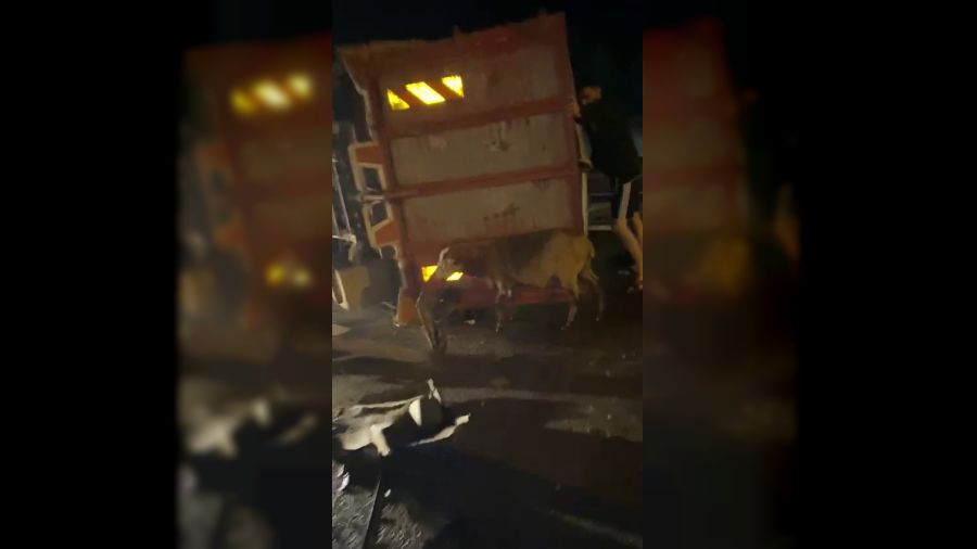 Kurbanlıkları taşıyan kamyonet devrildi 15 hayvan telef oldu