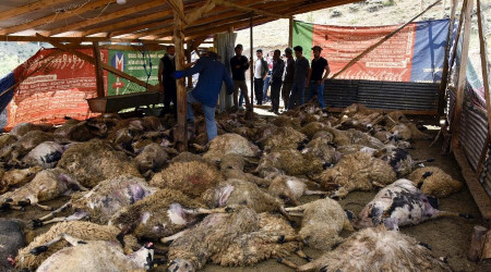 Telef olan koyunlar jandarma ekiplerinin tutanak tutmasının ardından İl Özel İdaresi ekiplerinin hazırladığı çukura doldurularak üzeri toprakla kapatıldı.İHA