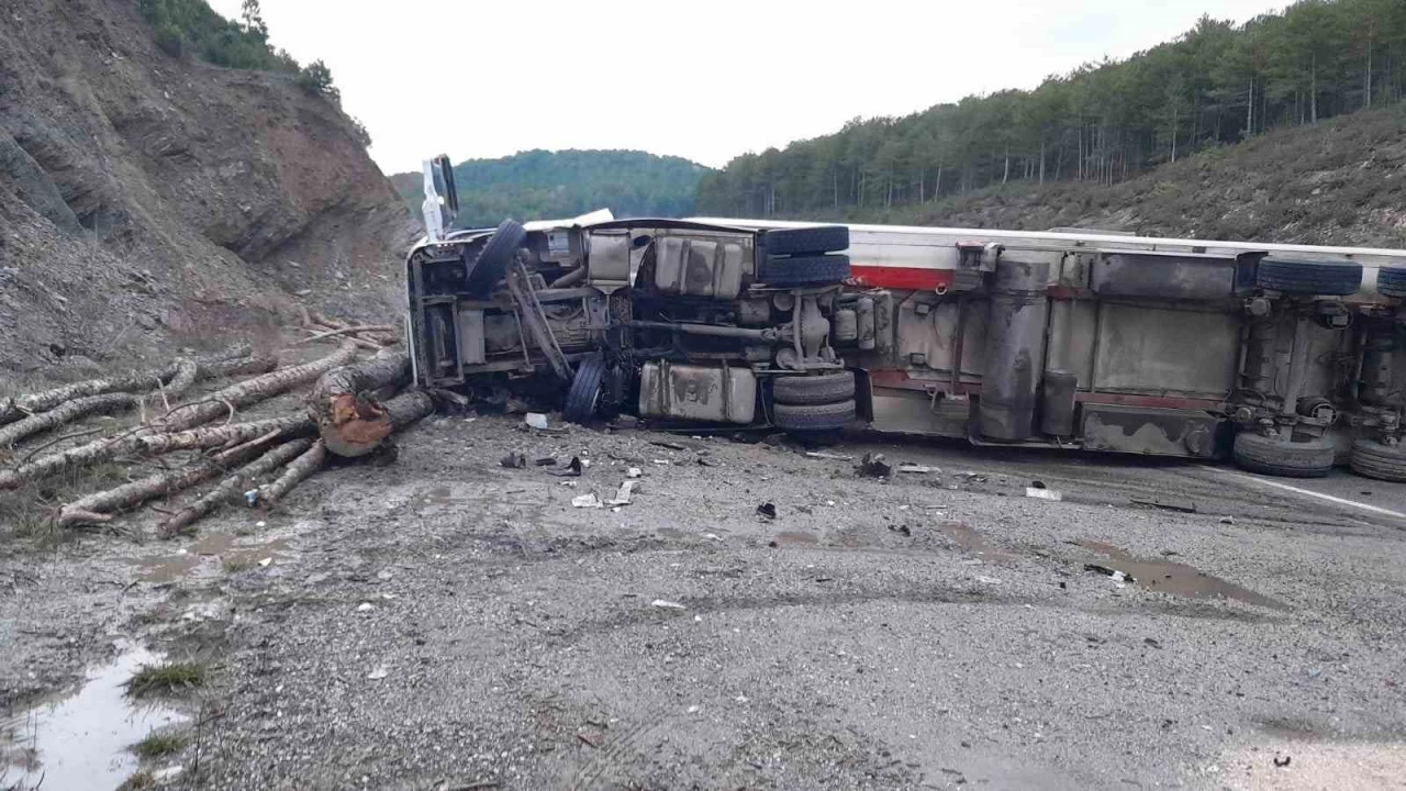 Kütahya'da tır, otomobilin üzerine devrildi: 1 ölü, 1 yaralı