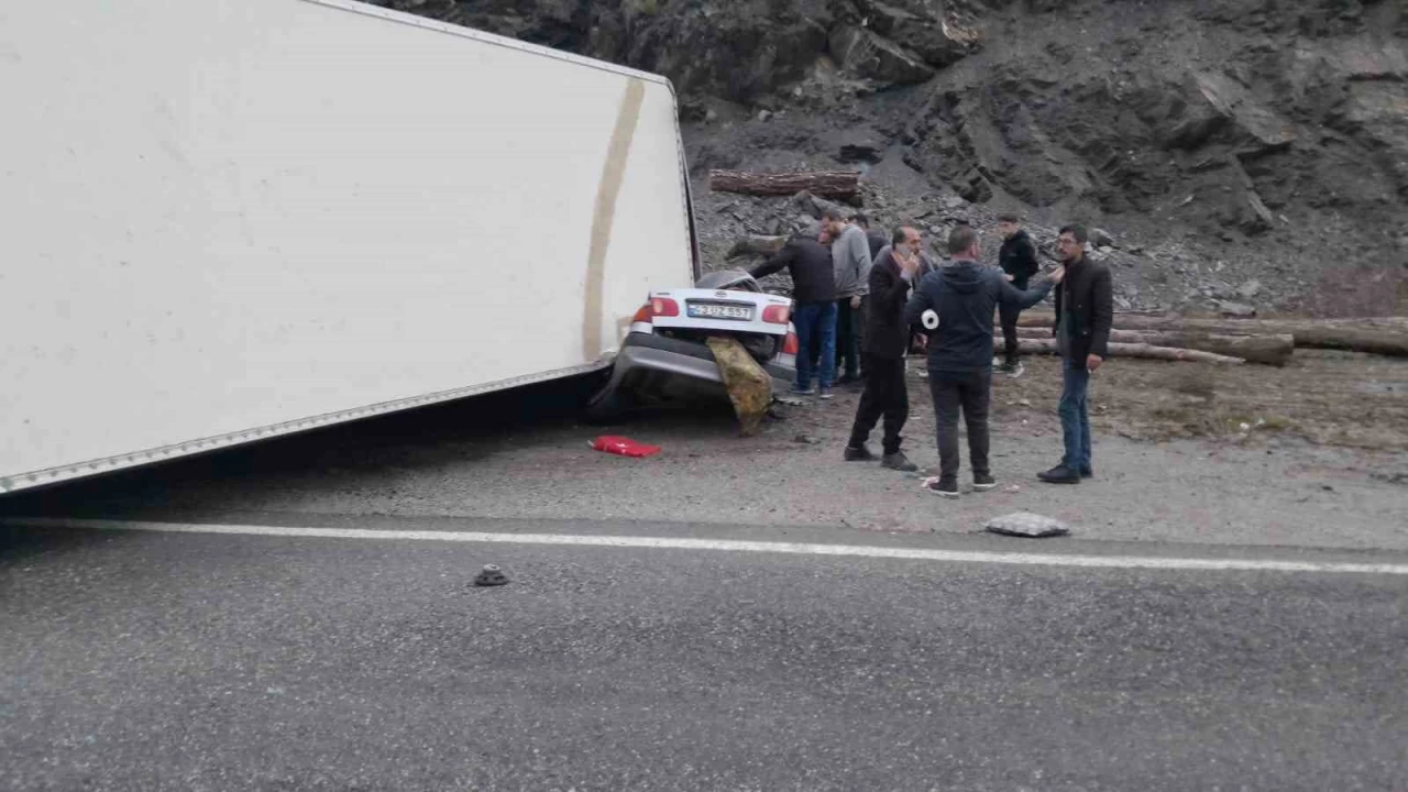 Kütahya'nın Gediz ilçesinde, tırın otomobilin üzerine devrilmesi sonucu meydana gelen trafik kazasında 1 kişi hayatını kaybetti, 1 kişi de yaralandı.