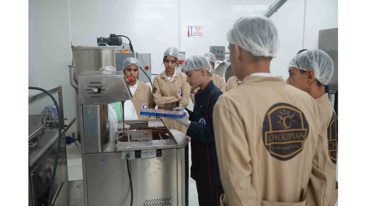 Öğrenciler tarafından okulda üretilen, dubai çikolatasından beyazdan bittere, karamelliden fıstıklıya çeşit çeşit çikolatalar, Milli Eğitim Bakanlığının destekleriyle kazandırılan atölyede profesyonelce imal ediliyor.