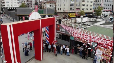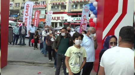 Döner sırası bekleyen Ahmet Aylamaz, 'Yaklaşık bir saattir, döner için sıra bekledik. Güzel görünüyor, hayatımda ilk defa bedava bir şey yiyeceğim. İndirim çadırını gezerek alışveriş yapacağım' diye konuştu.