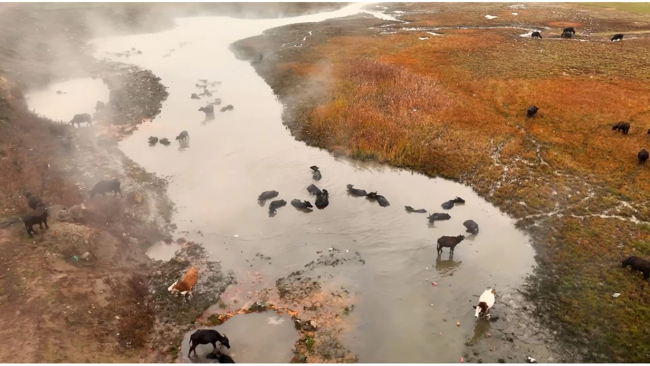 Güroymak ilçesine bağlı Budaklı köyünde, kış aylarının vazgeçilmezi haline gelen manda temizliği yine ilgi çekici görüntülere sahne oldu. Temizlenmeleri için kaplıcaya götürülen mandaların sıcak sulardaki keyfi, akademisyen ve fotoğraf sanatçısı Veysel Akşahin tarafından dronla görüntülendi.