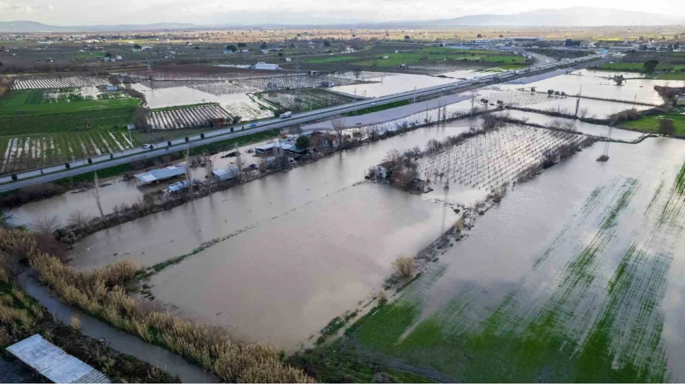 Gecenin karanlığında yaşanan taşkının boyutu, sabahın ilk ışıklarıyla birlikte havadan ve karadan çekilen görüntülerle ortaya çıktı. İzmir-Manisa çevre yolu çevresinde bulunan geniş tarım arazileri sular altında kalarak adeta göle dönerken, bölgedeki bir hayvan damı da taşkın sularından ciddi şekilde etkilendi. Dün akşam dereye düşen otomobilin ise ağaçların arasına sıkışmış hali gün yüzüne çıktı. Aracın bulunduğu yerden çıkarılması için suyun şiddetinin azalması bekleniyor.