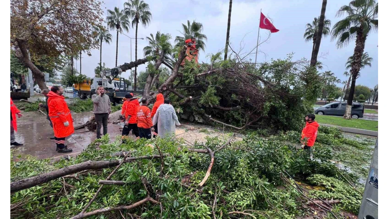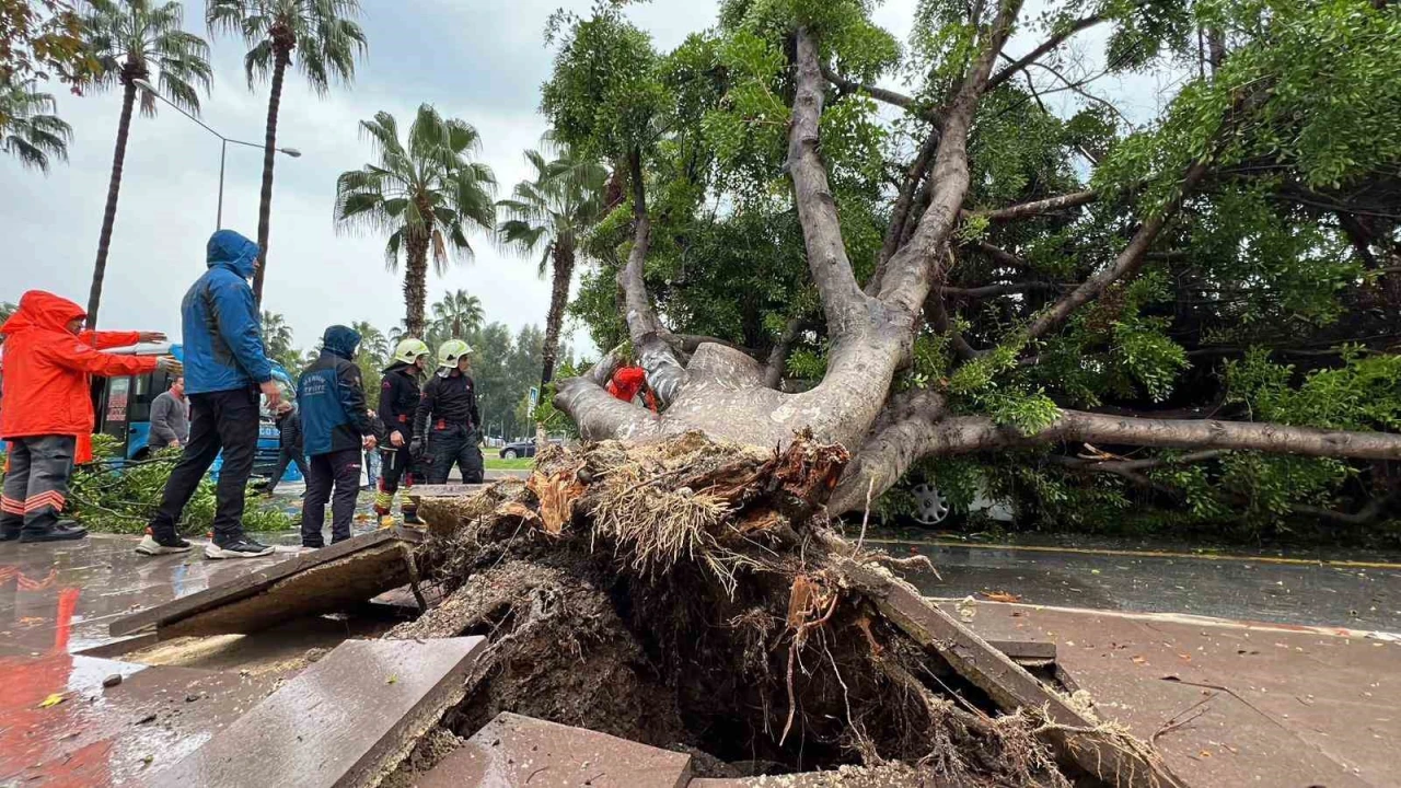 Mersin'de yağmurun etkisiyle kökünden sökülen bir ağaç, yoldan geçen 3 aracın üzerine düşerek hasara yol açtı. Olayda yaralanan olmadı