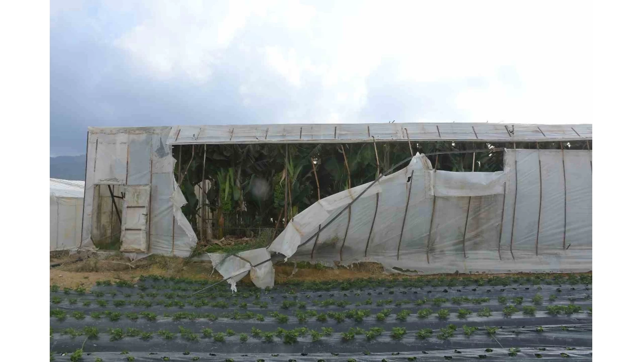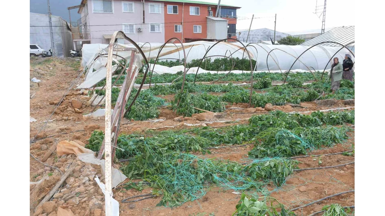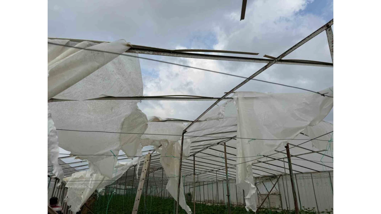 Naylonların parçalandığı, ürünlerin zarar gördüğü fırtına sabaha karşı etkisini kaybetti.