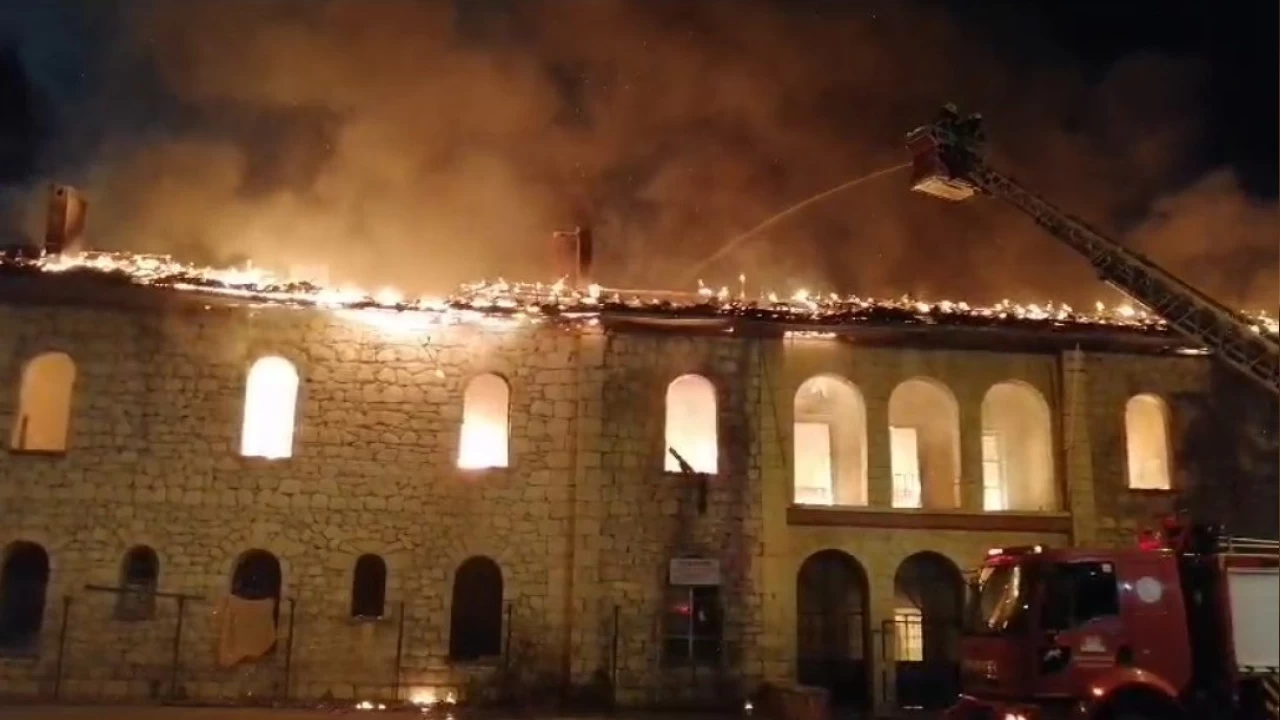 Mersin'de tadilattaki tarihi okul binası alev alev yandı