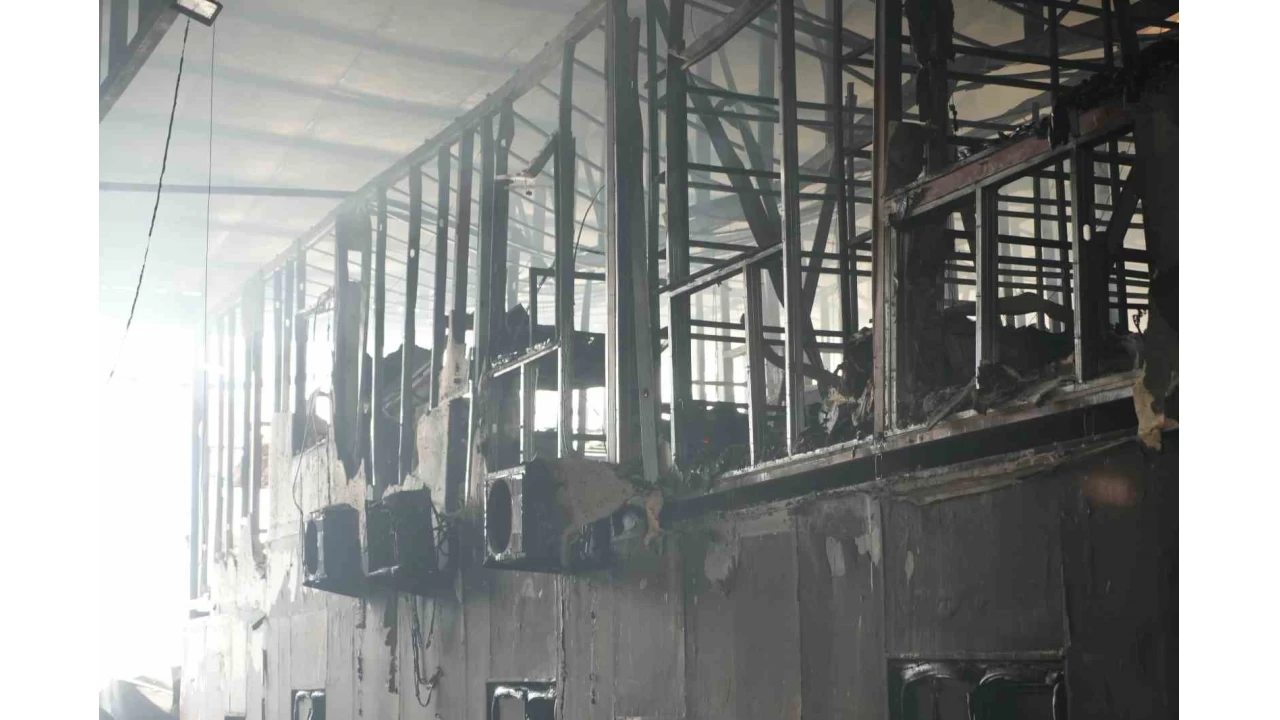 Sabah saatlerinde fabrikanın içinden alınan görüntülerde; yanan kasalar, sebzeler, iş makineleri ve çöken çatı bölümü dikkat çekti. Ekipler vinçlerle yanan ekipmanları kaldırdı.