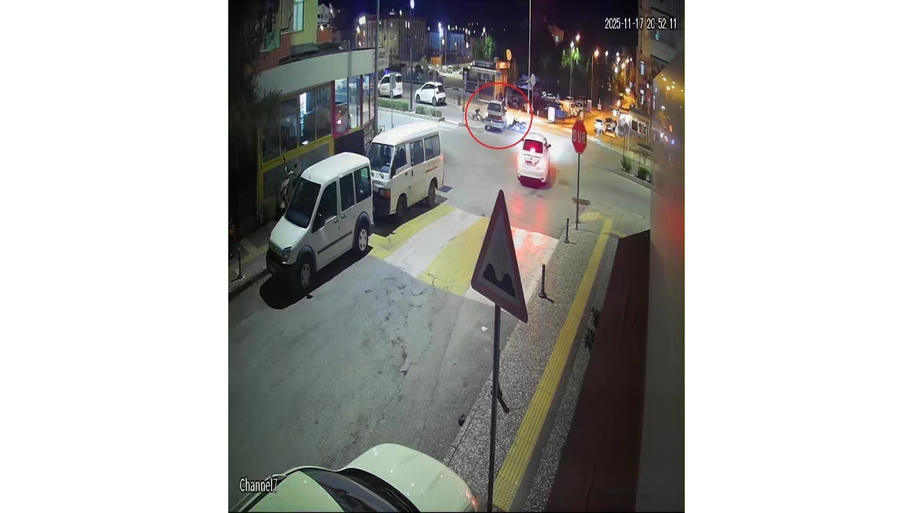 Öte yandan kaza anı çevredeki güvenlik kameraları tarafından saniye saniye kaydedildi. Görüntülerde motosiklet sürücüsünün otomobille çarpışması ve devamında havada takla atarak diğer tarafa düşmesi yer aldı. Ayrıca, kazayı gören çevredeki vatandaşların ve araç sürücüsünün yaralı motosiklet sürücüsüne yardım için koştuğu anlar görüntülere yansıdı.İHA