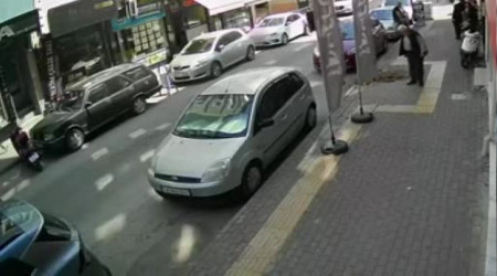 Cadde üzerinde bulunan bir iş yerine ait güvenlik kameraları ise, 2 kişinin yaralandığı kazayı saniye saniye kaydetti.