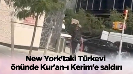 Türkiye'nin New York Başkonsolosluğu önüne gelen kimliği belirsiz bir kişi, Kur'an-ı Kerim'in İngilizce baskısını yere atarak tekmeyle saldırdı.