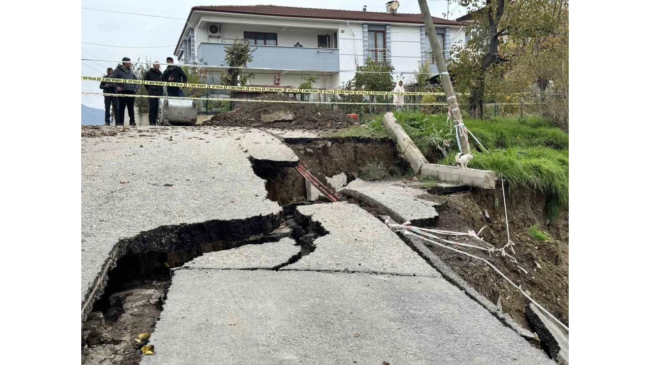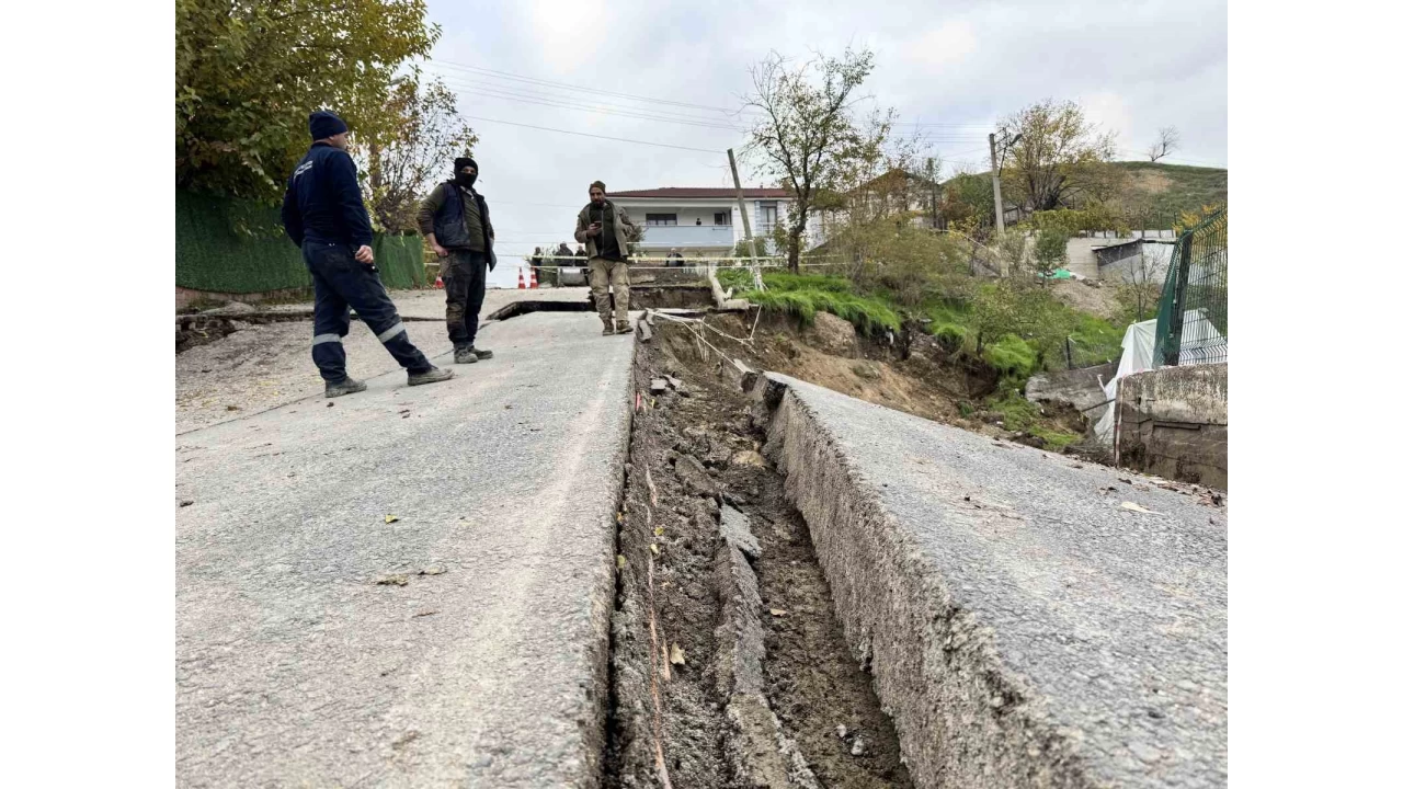 Ekipler, çökme yaşanan alanda güvenlik önlemi alarak yolu araç ve yaya trafiğine kapattı.
