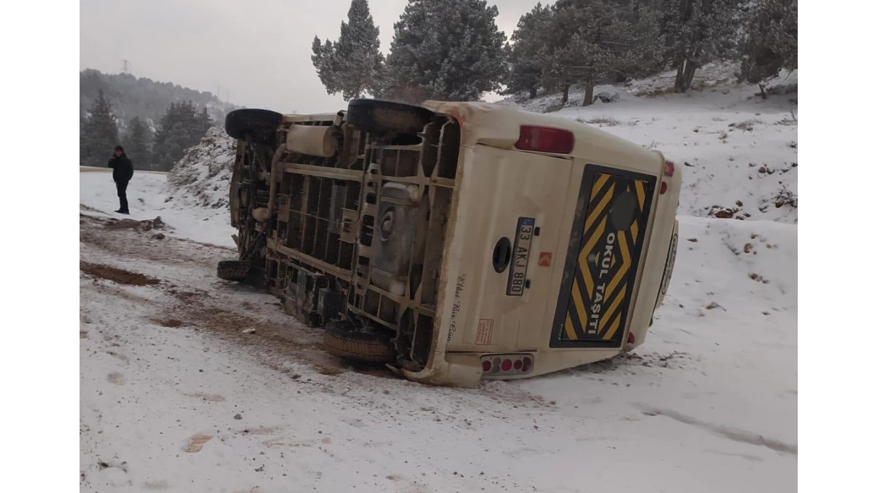 Mersin Erdemli'de öğrencileri taşıyan servis minibüsü karlı ve buzlu yolda kayarak devrildi