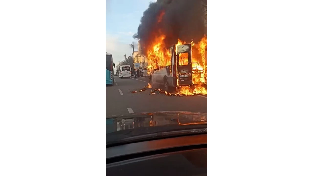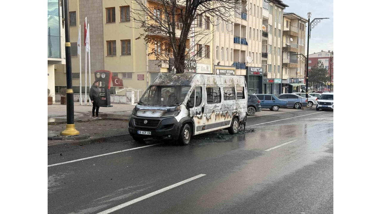 Sivas'ta park halinde bulunan bir okul servisi henüz bilinmeyen bir nedenle alev aldı. İçinde öğrenci bulunmaması oluşabilecek bir faciayı önlerken, minibüsün yanışını çaresizce izleyen sürücü büyük üzüntü yaşadı