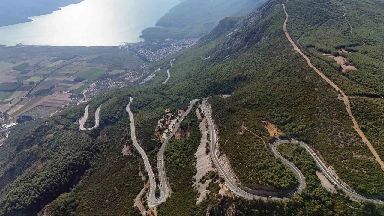 Yolun belli noktalarında bulunan araç park ceplerinde duran araçlardaki vatandaşlar, bölgedeki seyir noktalarından Gökova Körfezi manzarasını fotoğraflıyor.