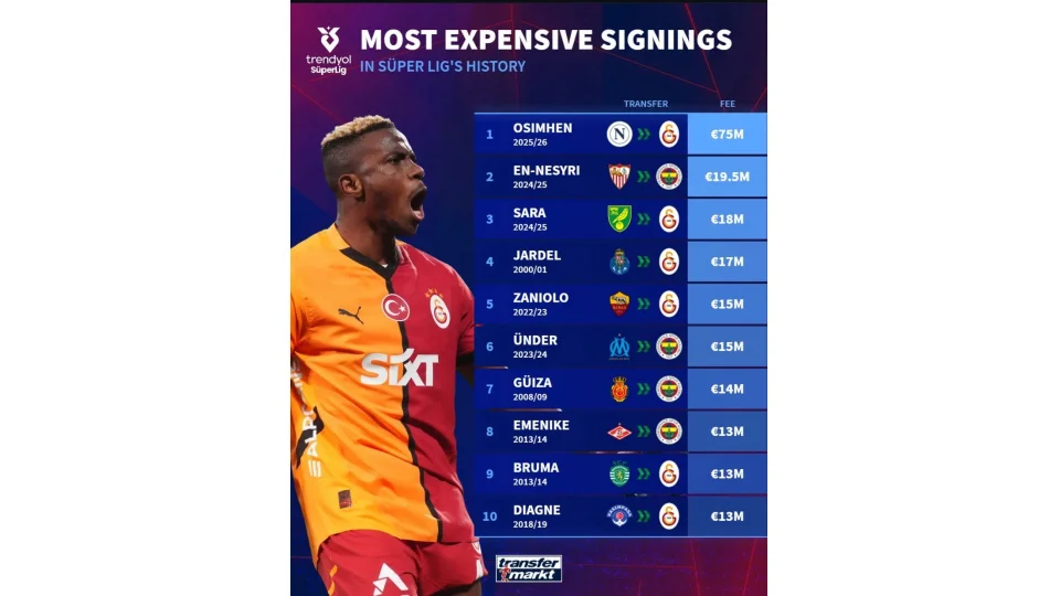 Galatasaray'ın golcüsü Osimhen sürekli olarak ligimizdeki farklı isimlerle kıyaslanıyor. Ancak piyasa değeri ve dünya futbolundaki yeri onu çok farklı bir yere taşıyor.
