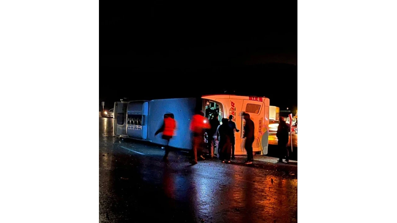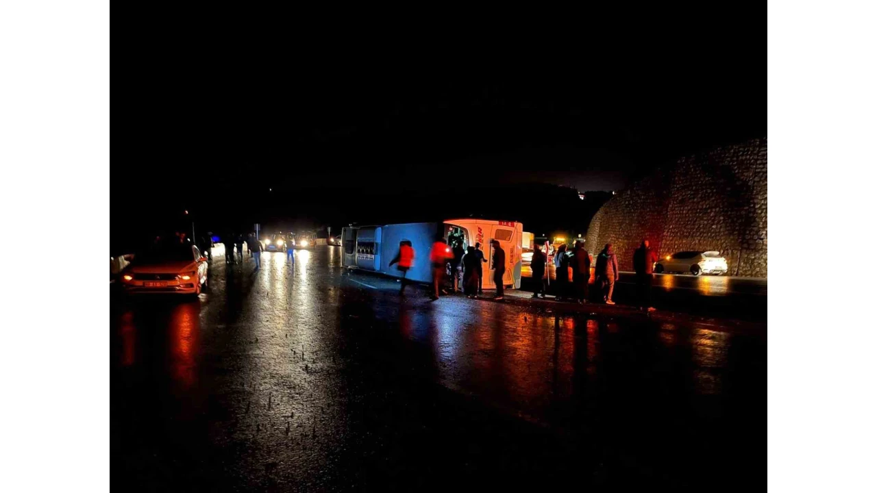 Osmaniye'nin Düziçi ilçesinde, yağmurun etkisiyle kayganlaşan yolda devrilen yolcu otobüsünde 3 kişi yaralandı