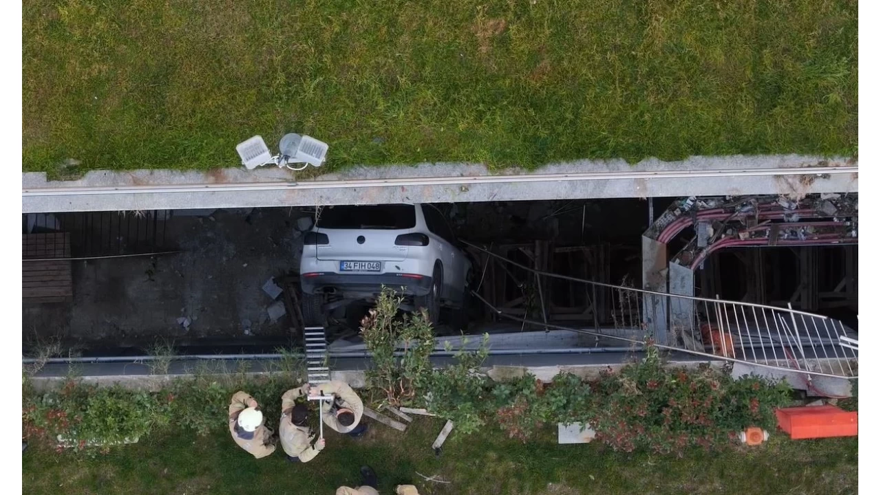 İstanbul Bahçelievler'de otoparktan çıkan kadın sürücü direksiyon hakimiyetini kaybederek çok sayıda araca çarptı. Demir korkulukları aşan otomobil boşluğa düştü. Sıkışan sürücü itfaiye yardımıyla kurtulurken, yapılan çalışmalar havadan görüntülendi