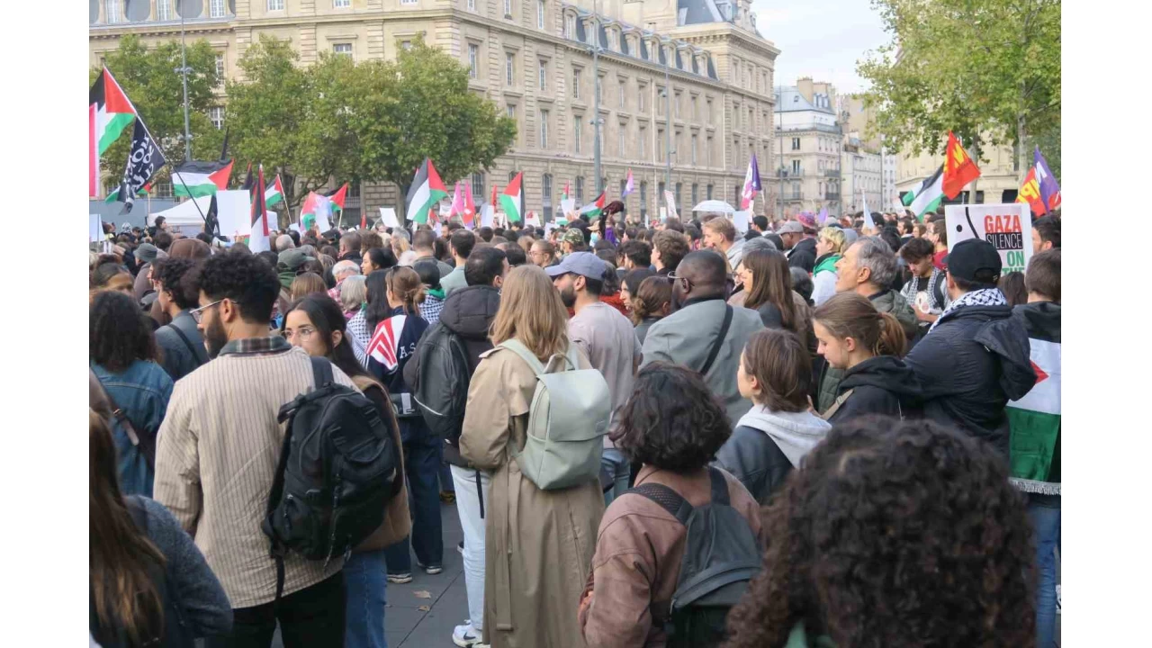 Fransa'nın başkenti Paris'te İsrail'in uluslararası sularda Sumud Küresel Filosu'na yönelik yasa dışı müdahalesini ve aktivistleri alıkoymasını protesto eden binlerce kişi protesto gösterileri düzenleyerek yolları kapattı