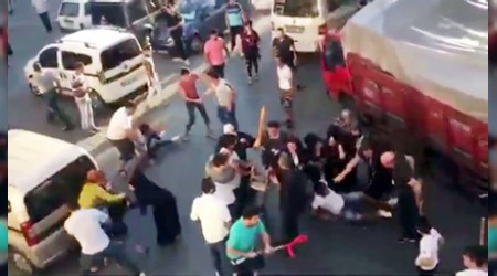 Çıkan kavgada taraflar birbirine sopalarla saldırdı. Ortalığın bir anda karıştığı ve kadınların çığlık çığlığa kaldı. Tabure ve çubukların havada uçuştuğu o feci kavga cep telefonu kamerasına saniye saniye yansıdı. Sivil polisin olay yerinde havaya 1 el ateş açmasının ardından taraflar güçlükle dağıldı. Kavga nedeniyle olay yerine çok sayıda polis ve sağlık ekibi sevk edildiği yaralı şahısların ise hastaneye kaldırıldığı öğrenildi. İHA