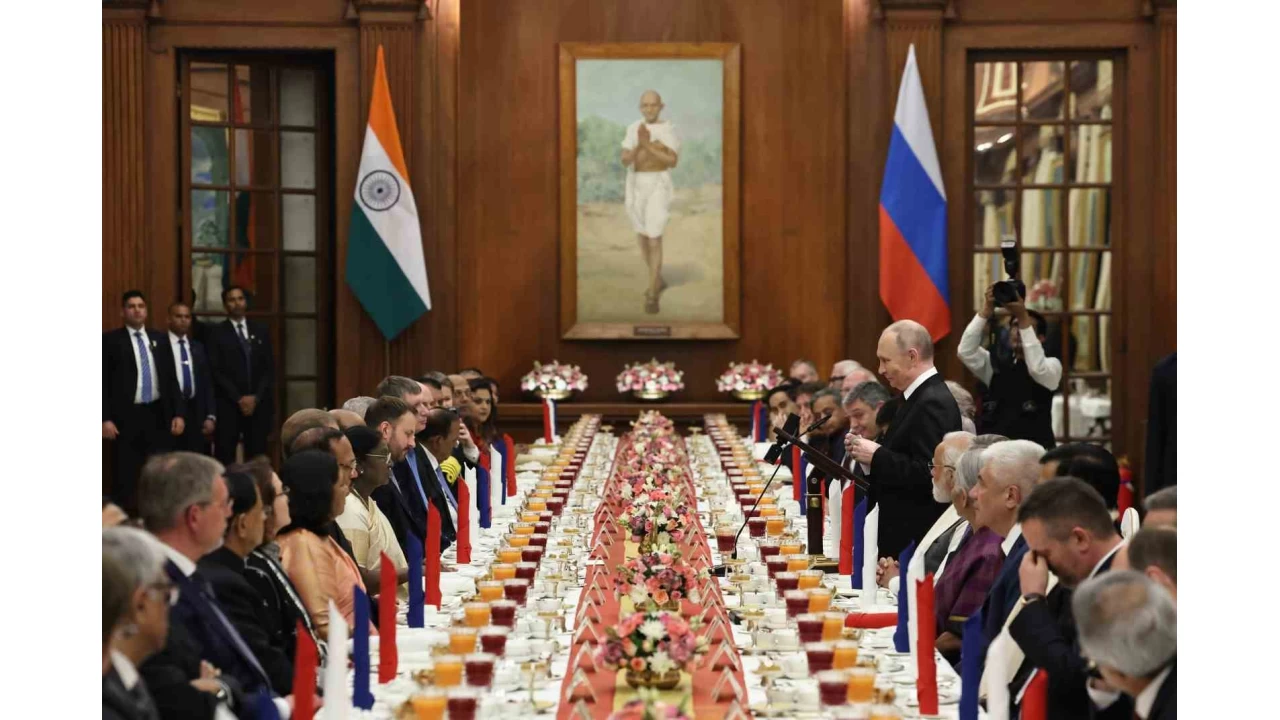Rusya Devlet Başkanı Vladimir Putin, resmi ziyareti kapsamında bulunduğu Hindistan'da onuruna düzenlenen resepsiyona katıldı. İki ülke marşlarının çalındığı etkinlikte Hindistan Cumhurbaşkanı Draupadi Murmu ve Başbakan Narendra Modi'nin ile beraberlerindeki Hindistanlı ve Rus yetkililer de yer aldı. Putin, daha sonra Hindistan-Rusya arasındaki ilişkilere yönelik açıklamada bulundu.