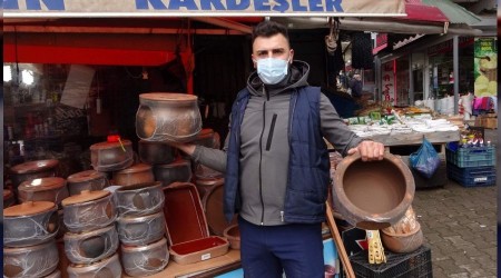 Trabzon'da güveç satışı yapan Mustafa Kaya, Ramazan dolayısıyla güveç satışlarında canlılık yaşandığını belirterek pandemi dolayısıyla lokantalarda iftarda güveç yiyemeyecek olan vatandaşların güveci evlerinde yapmak için güveç kabı aldıklarını söyledi.