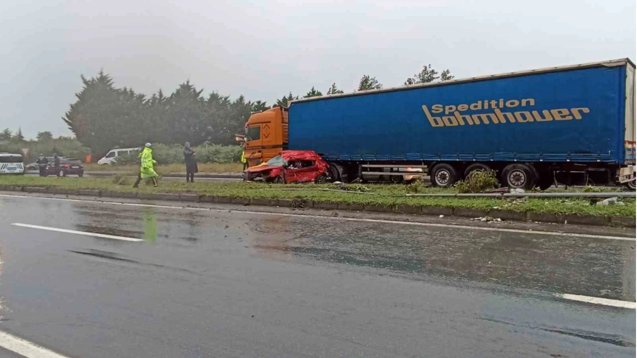 Rize'de otomobilin tırın dorsesine çarptığı kazada 3 kişi hayatını kaybetti.