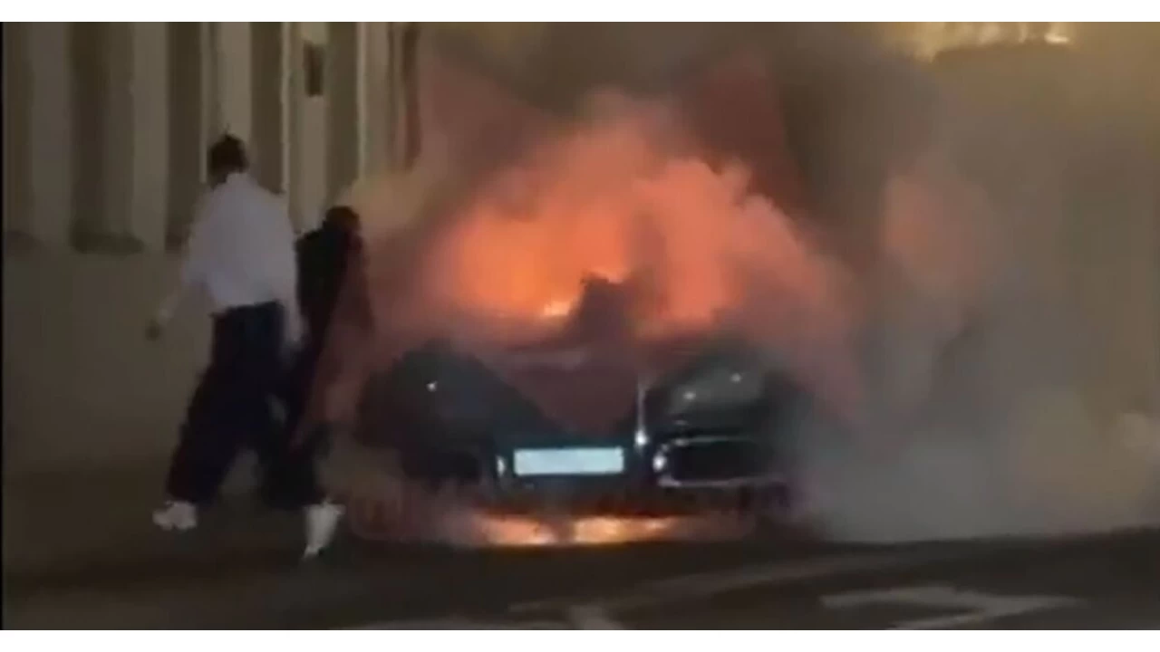 Alevler nedeniyle aracın bulunduğu sokağı siyah duman kaplarken, yangına ilk müdahaleyi çevredeki restoran çalışanları yaptı.