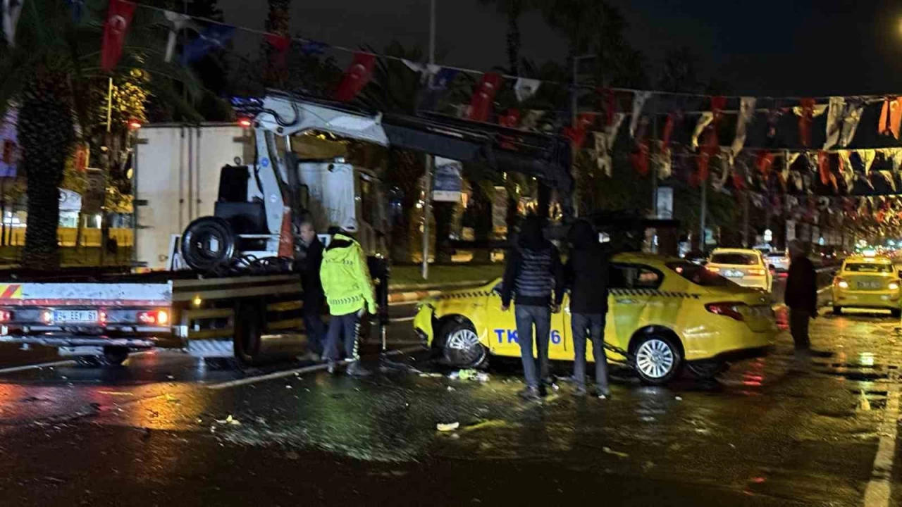 Ters dönen ticari taksi çekici yardımıyla bulunduğu yerden kaldırıldı. Polis ekipleri çökme meydana geldiği iki şeridi araç trafiğine kapatırken trafik tek şeritten akmaya devam etti.