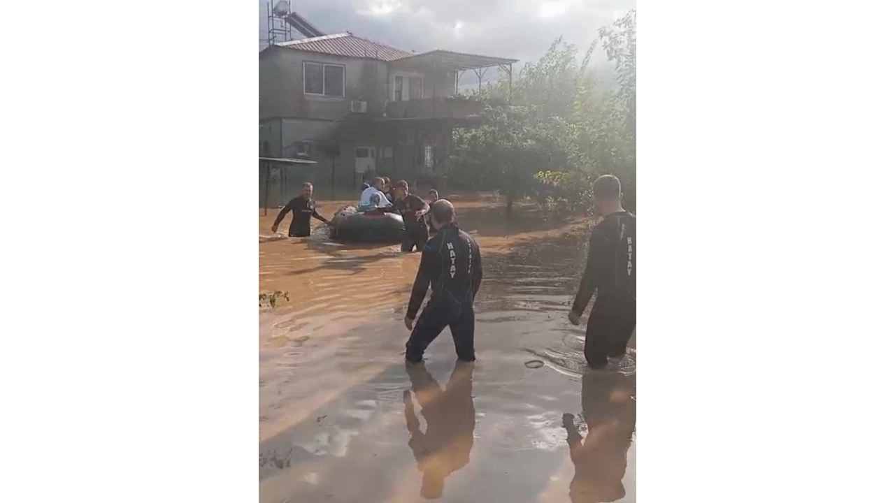 Hatay'da yağışın etkisiyle evlerinde mahsur kalan vatandaşlar, itfaiye ekipleri tarafından botla kurtarıldı