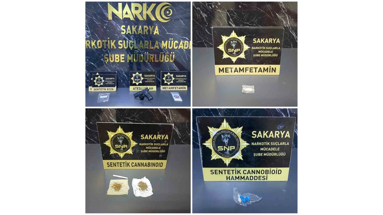 Yapılan aramalarda, 160.89 gram bonzai, 57 adet uyuşturucu hap, 26.30 gram metamfetamin, 1.36 gram bonzai hammaddesi, uyuşturucu madde ticaretinden elde edildiği değerlendirilen bin 490 TL, 2 ruhsatsız tabanca ve 14 adet fişek ele geçirildi.