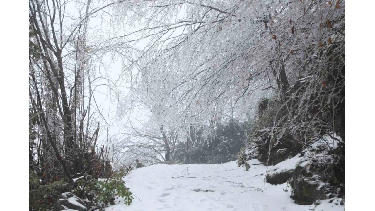 Kar yağışının yanı sıra bölgede etkili olan yoğun sis, güzel görüntüler oluşturdu.
