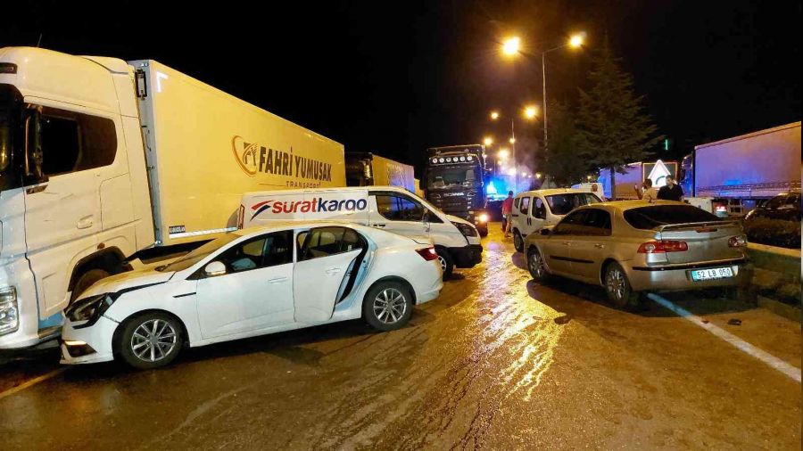 Bu sırada arkadan gelen araçlar yola dökülen mazottan kayarak zincirleme kaza meydana geldi. Aralarında tır, kamyon, kamyonet, hafif ticari araç ile otomobillerin de bulunduğu 23 araç birbirine girdi.