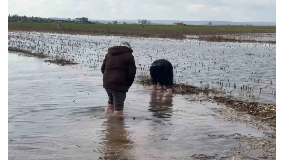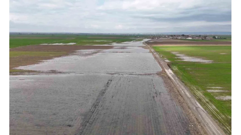 Yağışların ardından oluşan su birikintileri nedeniyle birçok tarla göle dönerken, çiftçiler ürünlerinin zarar görmesinden endişe duyduklarını ifade etti.