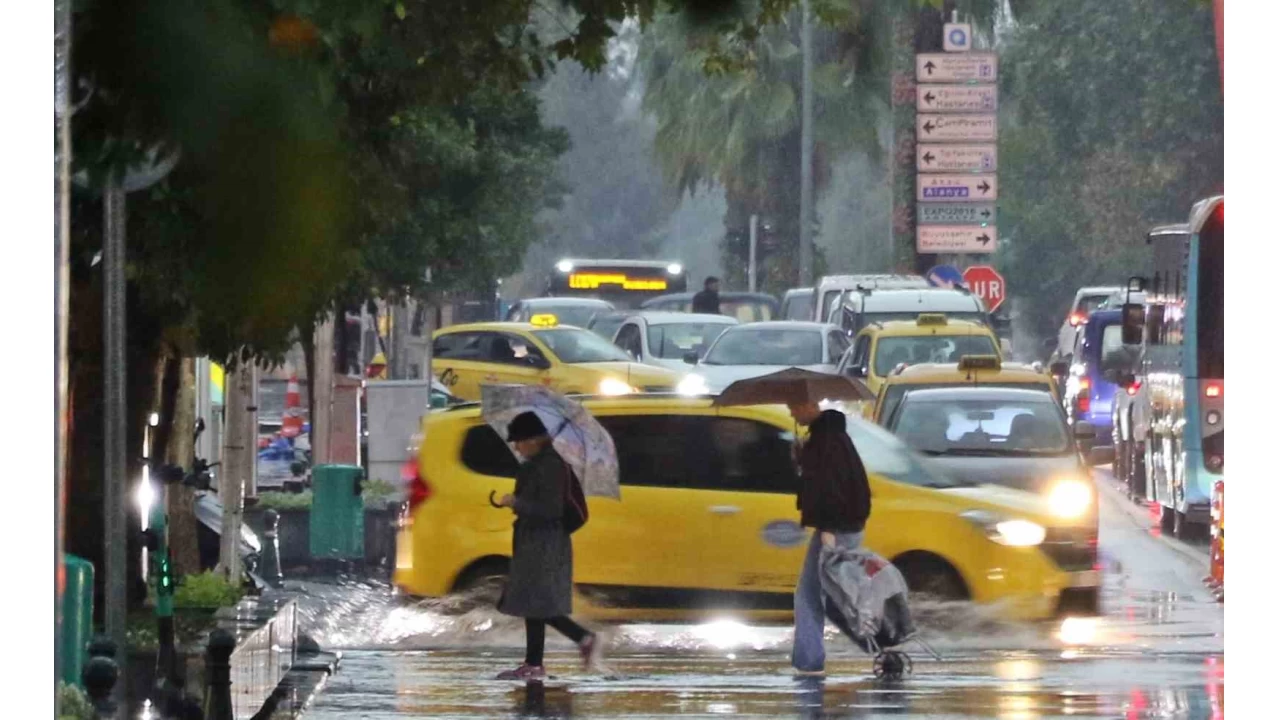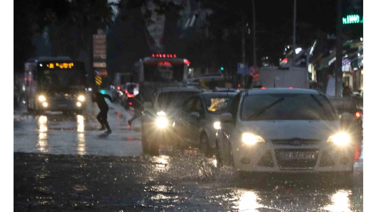 Meteoroloji'nin sarı alarm verdiği Antalya'da sağanak etkili oldu. Akşam saatlerine doğru başlayan yağış nedeniyle yollarda su birikintileri oluştu, araç sürücüleri ve yayalar zor anlar yaşadı