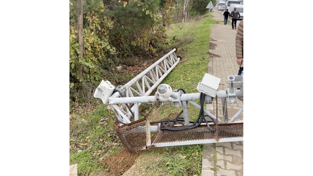 Çanakkale'de seyir halindeki tırın açılan dorsesi, Plaka Tanıma Sistemi'ne (PTS) çarptı. Kaza sonucu PTS devrildi