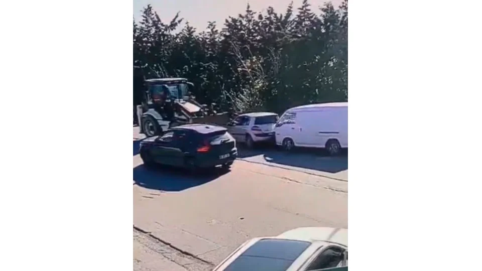 İstanbul Silivri'de sürücüsünün direksiyon hakimiyetini kaybettiği kepçe, park alanında iki aracı yaklaşık 60 metre sürükledi. Bir kadının kepçenin altında kalmaktan son anda kurtulduğu ve kepçenin araçlara çarptığı anlar kameraya yansıdı